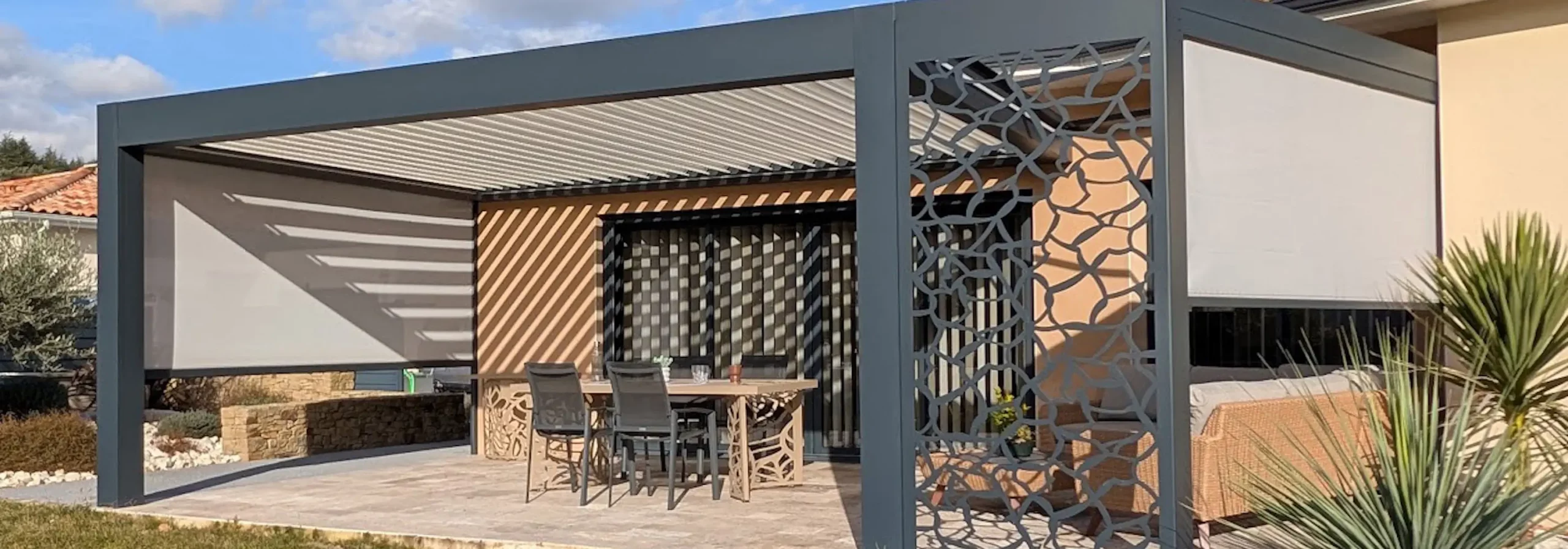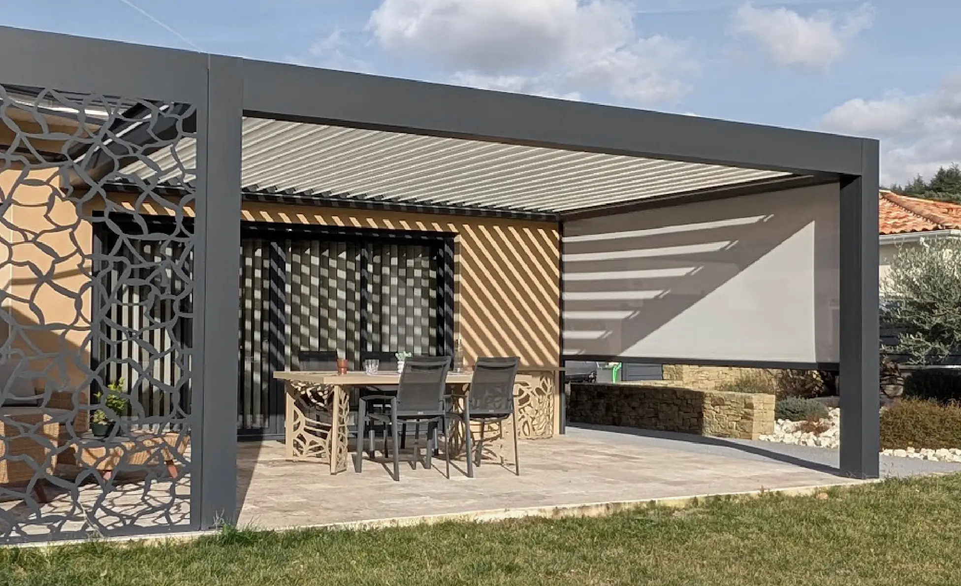 Nos pergolas jouent avec l’ombre et la lumière pour offrir un confort optimal toute l’année, tandis que nos structures en aluminium thermolaqué garantissent résistance, facilité d’entretien et longévité.