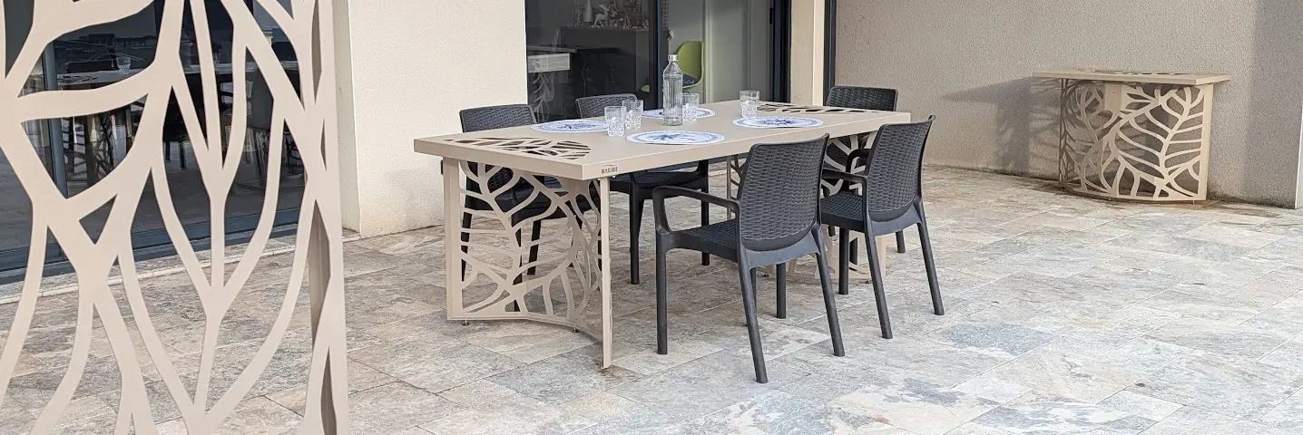 Depuis plus de 30 ans, MAXIME SARL conçoit, fabrique et installe des pergolas bioclimatiques, abris de voitures et mobilier extérieur sur mesure. L’entreprise s’est construite autour d’un savoir-faire reconnu dans la forge et le travail de l’aluminium, alliant exigence artisanale et innovation technique. Fondée par Franck Bineau et aujourd’hui dirigée avec Denis Ragnet et Thomas Sibour, l’entreprise conjugue maîtrise artisanale, innovation technique et exigence esthétique pour créer des aménagements extérieurs uniques, durables et parfaitement intégrés.