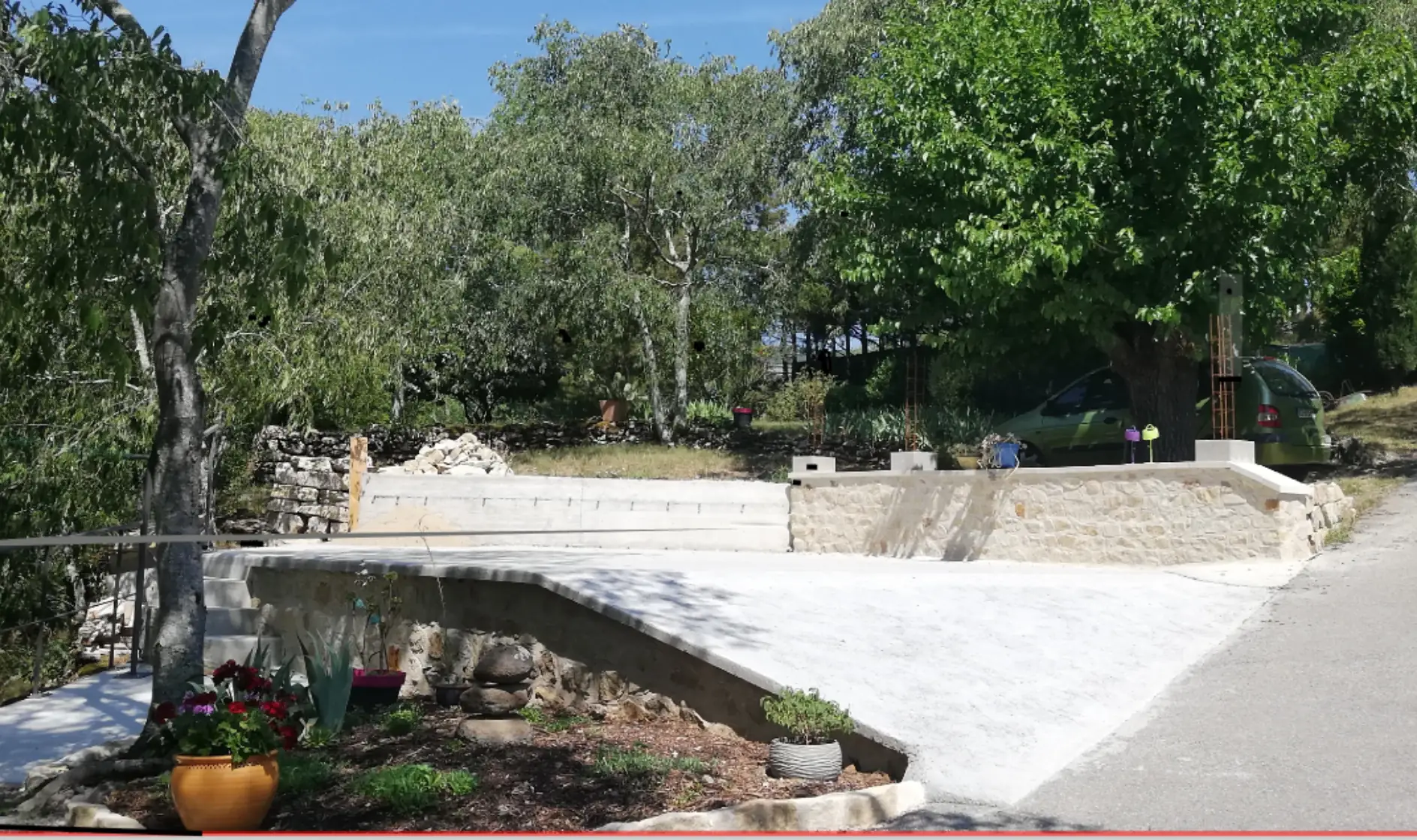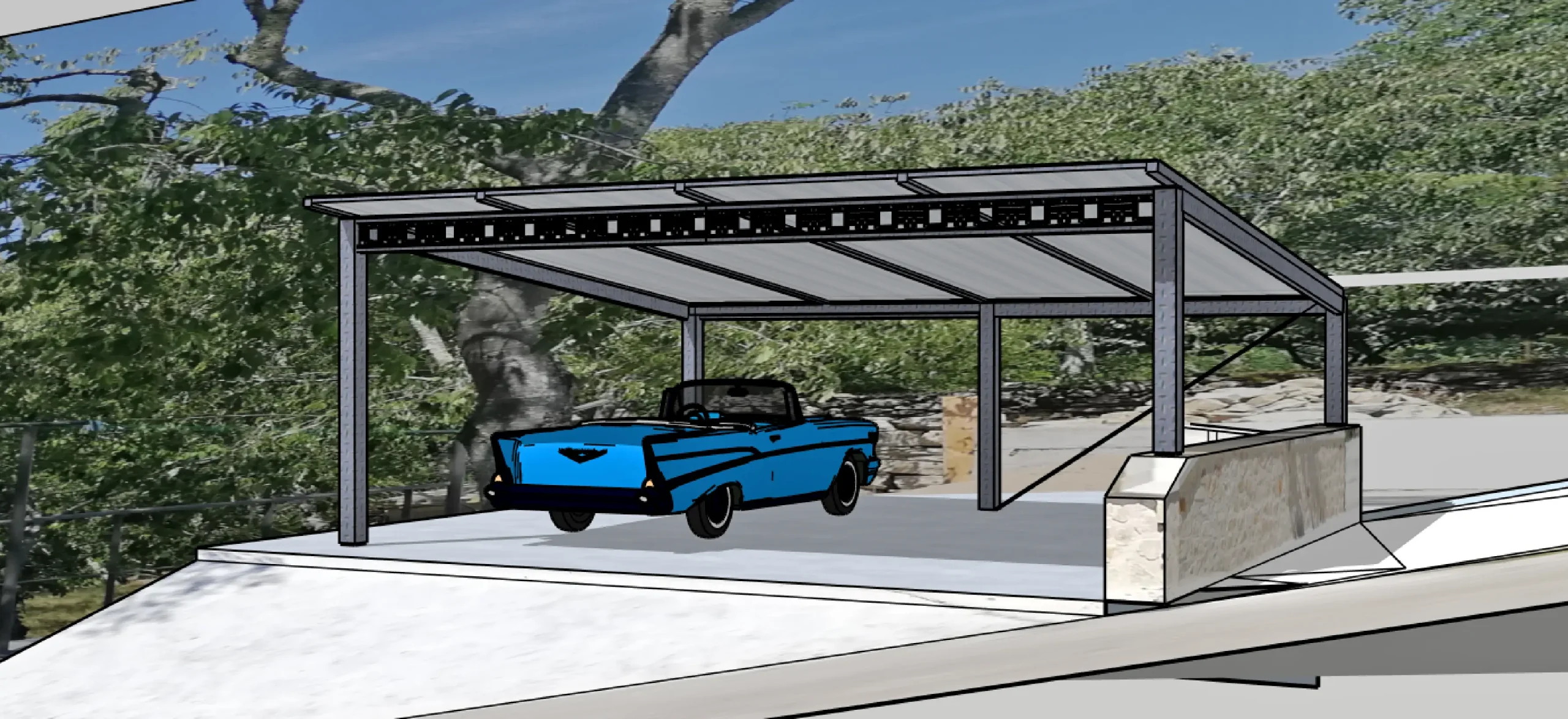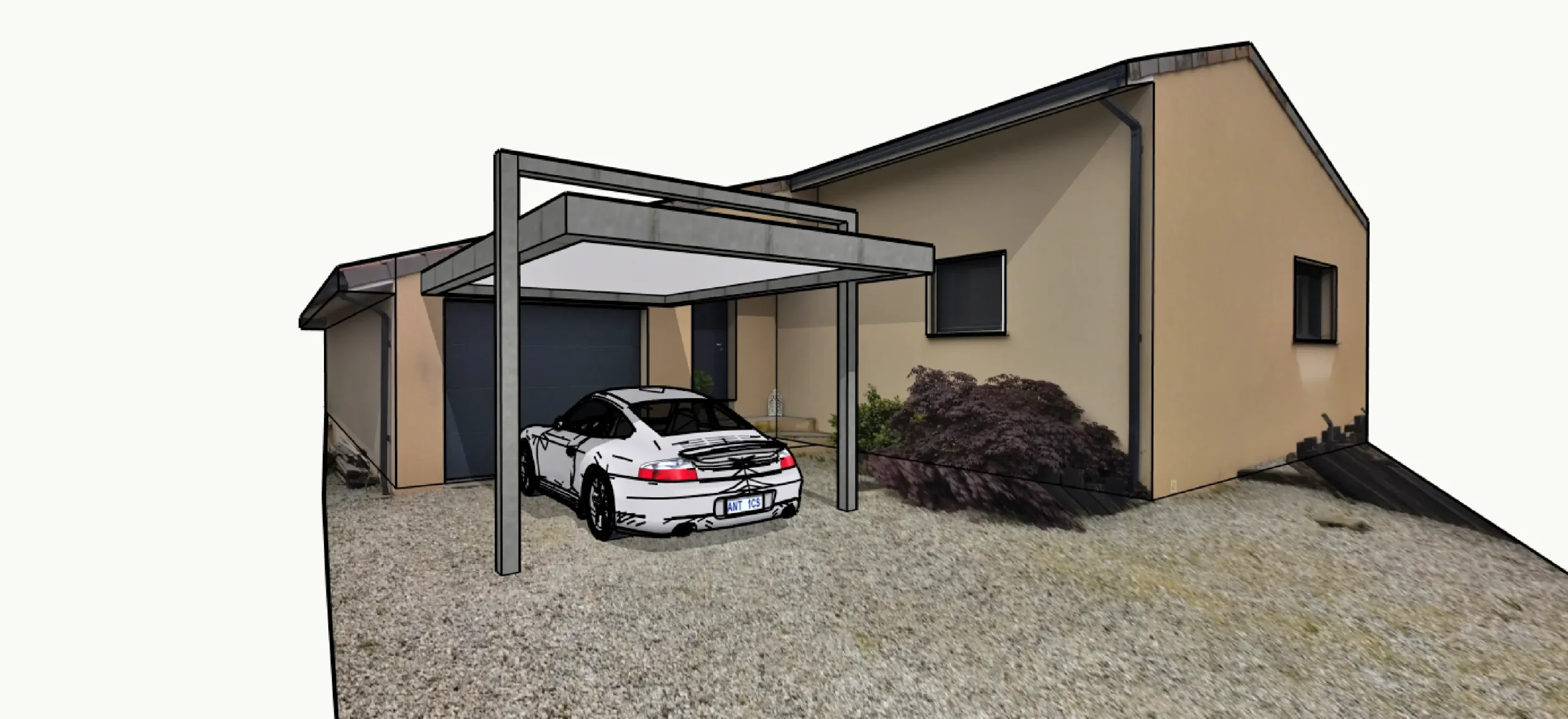 Notre client souhaitait un abri de voiture en face du garage et qui laisse voir l’entrée de la maison.